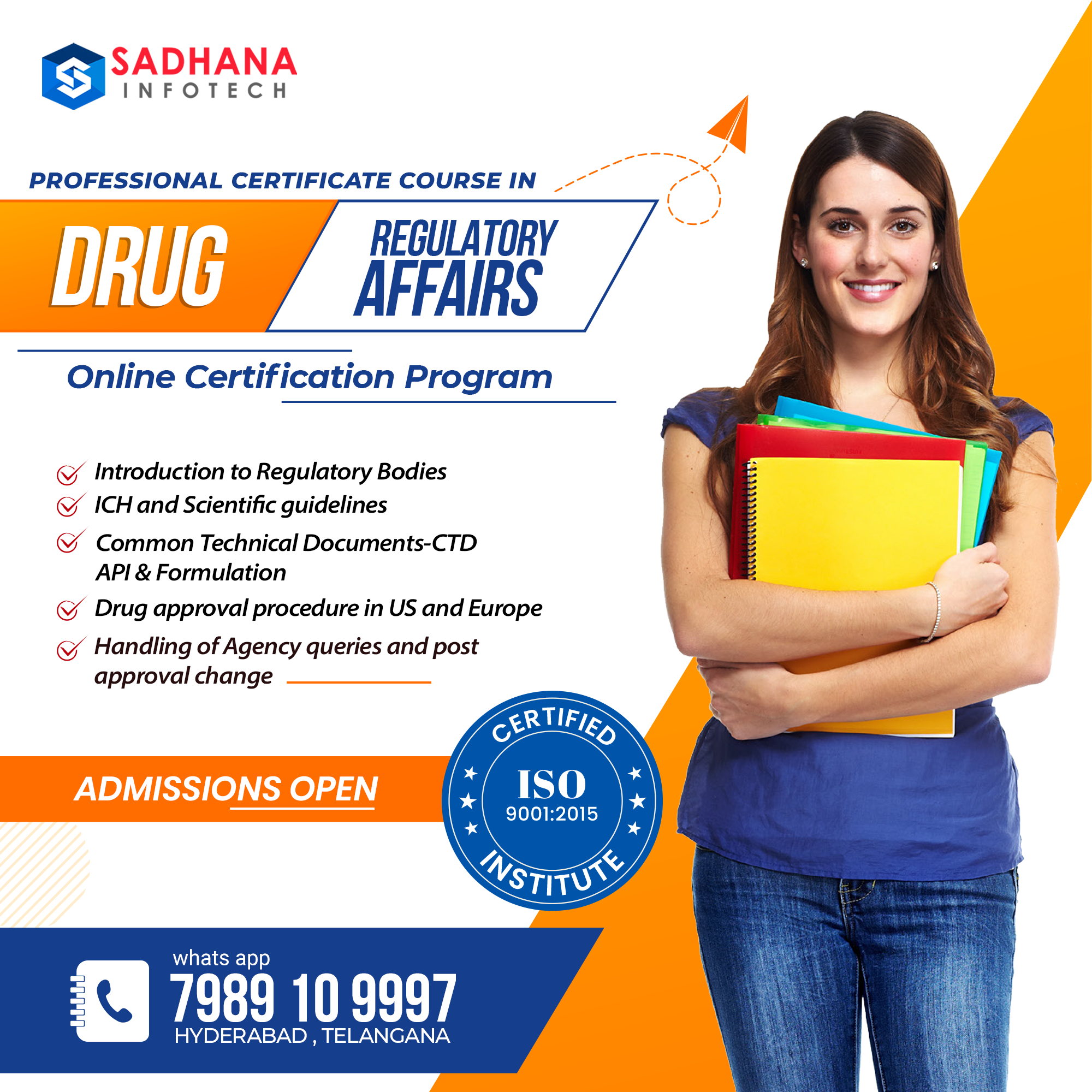 Our focus on regulatory affairs extends to specialized programs in drug regulatory affairs training. These courses delve into the intricate world of drug development, regulatory submissions, and compliance strategies. By choosing Sadhana Infotech for your drug regulatory affairs training in Hyderabad, you're investing in a holistic learning experience that prepares you for the challenges of the pharmaceutical industry.